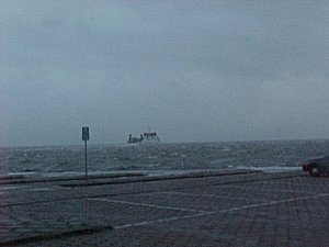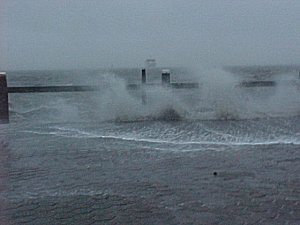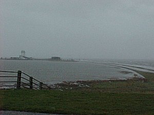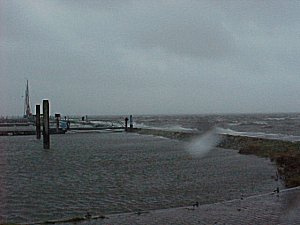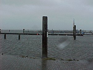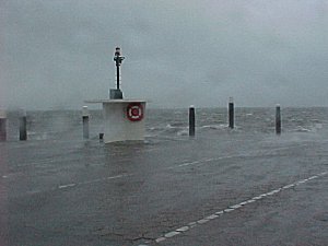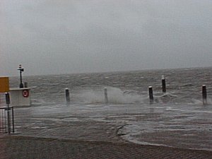 Even na drieën stond het water dusdanig hoog dat het niet vertrouwd was de steiger te bereiken met een personenauto.