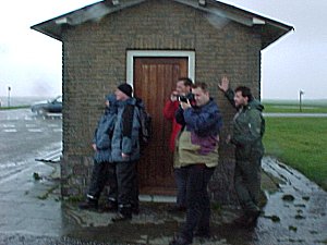 De bootreizigers moesten weer en wind trotseren om de boot te bereiken.