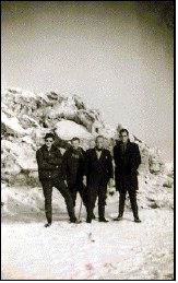 Luchtbrug naar Schier Schiermonnikoog ,, Kom op jongens, graven.’’ Een groep eilanders baant met een schop een pad door de hoge sneeuwduinen op het Westerstrand. De doorgang is noodzakelijk om goederen en vooral brandstof die de veerboten aan boord hebben, achter de sneeuw- en duinenrij te brengen. Schiermonnikoog is een zwarte vlek in een witte omgeving die veel weg heeft van de Poolzee. Meters hoge sneeuwduinen, ijsrotsen, schotsen geven het wad een macaber maar boeiend gezicht. In het dorp huppelen de konijnen en hazen rond. Op zoek naar voedsel. De fazanten laten zich uit de hand voeren. Honderden andere vogels zoals scholeksters vinden de dood. Iedere dag zwaait gemeentelijke voorman Harm Kruijer de rood- witblauwe banier. Op de geý ¨ mproviseerde landingsbaan loodst hij de vliegtuigen naar binnen. Beavers, die de post en kranten maar ook passagiers vervoeren. Het eilander isolement wordt met de dagelijkse luchtbrug opgeheven. Eind januari halen eilanders opgelucht adem. De dooi valt in. Het optimisme wordt snel de kop ingedrukt. Een paar dagen later regeert koning winter opnieuw. De Beavers blijven komen en gaan. ,, Hij komt. De veerboot haalt het”, schalt het op 7 februari door het dorp. De mensen van rederij Wagenborg slaagden erin met de veerboot de westpunt van het eiland te bereiken. De noodzakelijke brandstof kan worden gelost. De kachels kunnen weer branden, de fornuizen weer roken. Schiermonnikoog krijgt in die barre maanden te maken met een nieuw vorm van toerisme. IJswandelaars die veelal vanaf Hornhuizen de oversteek wagen. Onbekendheid met het wad maar vooral de grilligheid van de natuur breek het merendeel zuur op. Eilanders schieten te hulp en brengen een aantal veilig naar het dorp. Eenmaal op het eiland wagen de meesten zich niet aan de terugtocht. Zij kopen een kaartje voor de Beaver en vliegen naar Leeuwarden. De ijswandelaars brengen enige eilanders op het idee een route uit te zetten. Wadkenner Klaas Hellinga verkende enige dagen het wad. ,, En dan besluiten we te gaan’’, zegt Bouke Henstra. De zon schijnt als Klaas Hellinga, zijn zoon Clive, Bouke Henstra, Hessel Zijlstra en Jan Berend Bazuin goedgemutst en bij licht vriezend weer aan de route naar Hornhuizen beginnen. Een peulenschilletje, denken ze. Het pakt anders uit. IJsbergen van soms wel 5 meter hoog versperren de doortocht. De schotsen vragen veel van de conditie. Henstra: ,, Onderweg komen we een groepje met eilander Henk Visser tegen. Zij willen naar Schiermonnikoog maar keren halverwege terug. Het was afzien. Ik heb me vele malen afgevraagd waar we aan begonnen waren.’’ Rond twee uur bereiken ze de Groningse kust. In Hornhuizen smaakt de warme koffie extra lekker. Vier eilanders maken de barre tocht terug. ,, We zijn hier gekomen en dan lukt de terugreis ook’’, zegt gids Hellinga. Jan Berend gaat niet mee. Hij gaat naar Groningen om zijn zieke moeder te bezoeken. Na ruim vijf uren klunen en klauteren, glijden en vallen komen de vier op het eiland aan. Een auto brengt hen naar het dorp. Twee dagen later trekt Jilt Visser de hoge laarzen aan. Een uur later is hij terug. De wind en de vorst maakt van het wad een onherbergzaam oord met enkel valkuilen. Eind februari raakt Schiermonnikoog geheel geïsoleerd. Een dagenlange dikke mist maakt vliegtochten onmogelijk. Begin maart valt de dooi in en is de Waddenzee weer bevaarbaar. Henstra nu: ,, Wij waren de laatsten die de tocht over het ijs hebben gemaakt. Ik denk niet dat dit feit herhaald zal worden. De strenge winters van toen zijn voorbij en de zwaardere motoren van een veerboot of ijsbrekers zorgen er voor dat het eiland over zee bereikbaar blijft.’’ Eilanders graven een doorgang naar de veerboot. Jan Berend Bazuin, Wessel Zijlstra, Klaas Hellinga en Bouke Henstra bij een metershoge ijsberg op het wad. Foto Clive Hellinga Bron: Leeuwarder Courant 11-02-2003 |