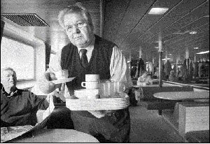 Achttienduizend keer heen en weer naar Schier. Schiermonnikoog 22-03-2003 Een bakkie leut, een broodje kaas en een vriendelijk woord. Bijna dertig jaar was Gerrit Mollema ( 59) uit Ulrum beschikbaar voor klanten van de veerboten van Wagenborg Passagiersdiensten. Alle eilanden deed hij aan, maar Schiermonnikoog toch wel het vaakst. Eilanders kennen hem als Ome Gerrit. Een vriendelijk woord, jazeker, maar dan moest de passagier zich wel gedragen. ,, Als mensen met hun voeten of met een hond op de banken zaten, dan zei ik er wat van. Dat doe je toch niet als je op visite bent?” Het begon allemaal in 1965 als bijbaantje. Wiebe Huizing, de opa van de huidige baas, vroeg of hij niet eens wou helpen. Het kwam hem eigenlijk wel goed uit. ,, Hoefde ik mooi niet naar de kerk’’, bekent hij nu. Inmiddels heeft hij de oversteek ruim achttienduizend maal gemaakt.Toen kostte een kopje koffie nog 50 cent, nu €1,35. De boten zitten veel voller dan vroeger. ,, In de zeventiger jaren zat je op zondag met een dominee of een pastoor, en soms nog vier andere mensen.’’ In 1969 maakte Mollema de afsluiting van de Lauwerzee mee aan de zijde van koningin Juliana. Dan komt de toeristenstroom echt op gang. Ook bekende Nederlanders wisten hun weg naar de eilanden te vinden. Zo schonk Mollema koffie aan prinses Margriet, Pieter van Vollenhoven, Brigitte Kaandorp, Bennie Joling, Paul de Leeuw, Paul van Vliet en Wim Duisenberg. Zelf is hij inmiddels ook bijna een bekende Nederlander. ,, Ik was in de Keukenhof met mijn broer en nichtje uit Nieuw- Zeeland. Iemand zei onmiddellijk ‘ Kijk daar heb je die meneer van de boot ook’.” Mollema zag op de boot hele generaties eilanders groot worden. ,, De kinderen van toen, kregen kinderen en vervolgens ook kleinkinderen. En allemaal noemen ze me Ome Gerrit.” Op alle eilanden heeft hij wel gevaren, mijn zijn hart ligt bij Schiermonnikoog ,, Dat is nog zo mooi rustig.’’ De koffieschenker verheugt zich op de vrije tijd die hem staat te wachten. ,, Filmen, fotograferen, stickers verzamelen, al die dingen waar ik nooit aan toe ben gekomen.”