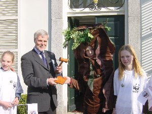 Groene hamer voor burgemeester Fennema. Schiermonnikoog 26-03-2003 Bron: Eric Augusteijn |